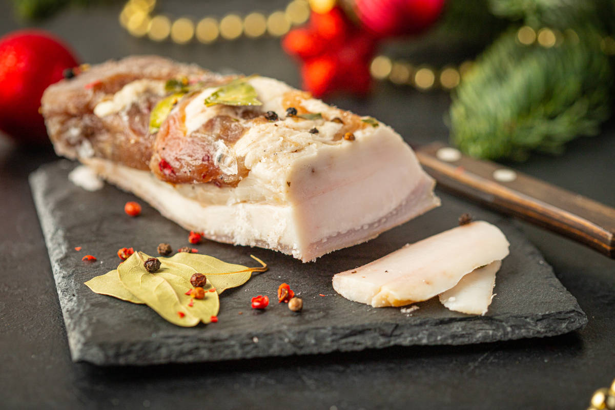 Solené sádlo: suché solení s černým pepřem a česnekem