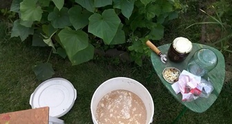 - 1 kg čerstvého droždí namočte do kbelíku s vodou, pevně přikryjte pokličkou a dejte na 2-3 dny na teplé místo. Poté přidejte 10 litrů vody a důkladně promíchejte. Spotřeba: 1-1,5 litru na keř, voda u kořene.