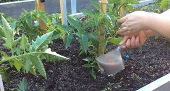 Před začátkem kvetení je nutné rajčata počtvrté přihnojit kvasinkami. Použijeme stejný roztok, ale přidáme 2 litry na rostlinu.