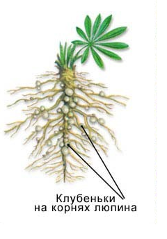 Lupina je zelené hnojení (zelená dobrota). Kořeny kořenového systému rostliny pronikají hluboko do země. Kořen může dosáhnout 1-2 metry a jak roste, uvolňuje půdu. Speciální struktura kořenů jim umožňuje absorbovat dusík ze vzduchu a naplnit jím půdu. Proto se kořenový systém lupiny často velmi dobře využívá.