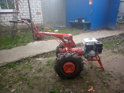 Objednal jsem v Gomelu pojezdový traktor MTZ 09 Honda + nástavec a dnes byl doručen. Při nabíhání a nastavování nástavce jsem objednal i adaptér a vyorávač brambor bude dodán za týden. Děkuji za pozornost .