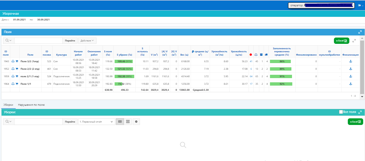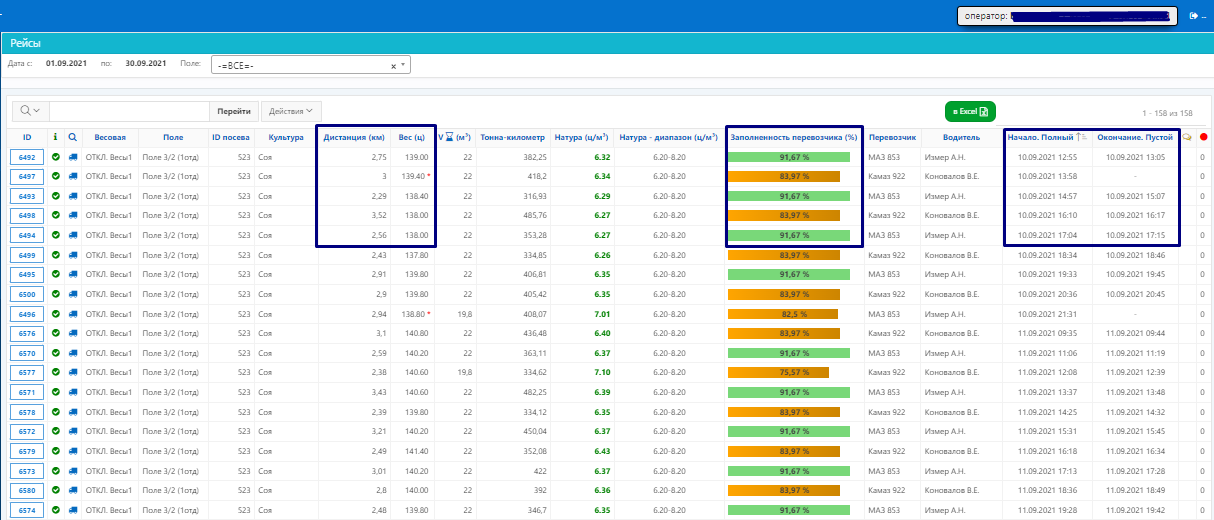 Zaprvé, software pro sklizeň sleduje stav naplnění sklízecích mlátiček, což umožňuje včasné vyložení. Zadruhé, systém sleduje rychlost sklízecí mlátičky a identifikuje porušení procesů, jako je například provoz překročení povolené rychlosti. Kromě toho automatizuje identifikaci dopravců, váží kamiony před a po vyložení a zaznamenává veškerá data pro následnou analýzu.